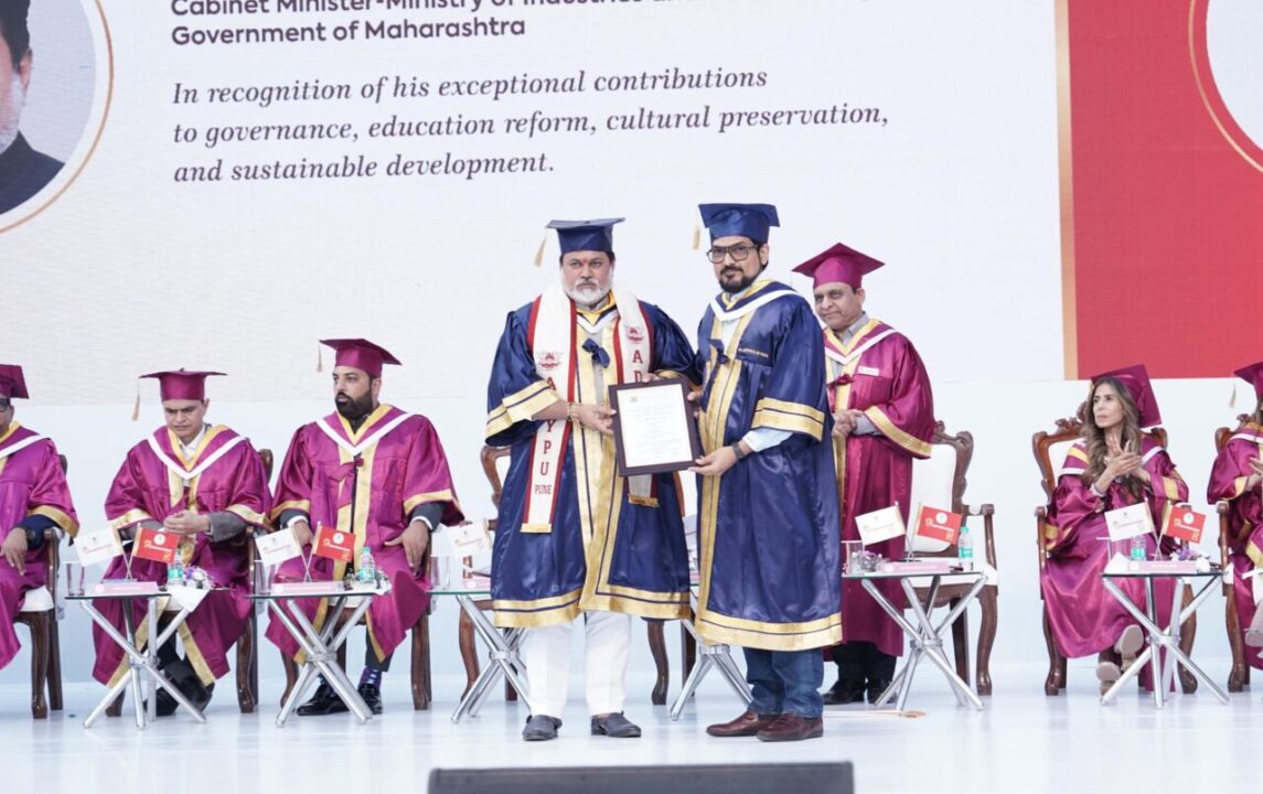 अजिंक्य डी.वाय. पाटील विद्यापीठाच्या विशेष दीक्षांत समारंभात मंत्री उदय सामंत यांना डॉक्टरेट पदवी प्रदान करण्यात आली. या सोहळ्याला विद्यापीठाचे संस्थापक डॉ. अजिंक्य डी.वाय. पाटील, विद्यापीठाचे अधिकारी, विद्यार्थी आणि इतर मान्यवर मोठ्या संख्येने उपस्थित होते.