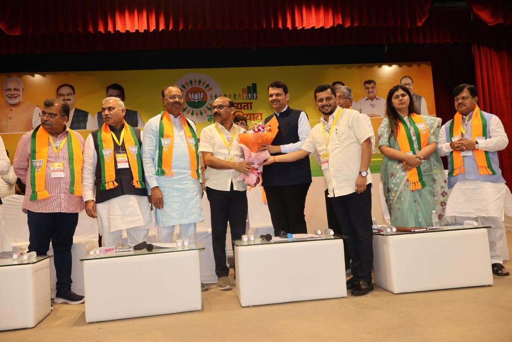 भारतीय जनता पार्टी महाराष्ट्र प्रदेश संघटन पर्व बैठक आज मुंबई येथे पाटकर हॉल, न्यू मरीन लाइन्स येथे महाराष्ट्राचे मुख्यमंत्री देवेंद्रजी फडणवीस यांच्या प्रमुख उपस्थितीत पार पडली. यावेळी प्रदेशाध्यक्ष चंद्रशेखरजी बावनकुळे, प्रदेश कार्यकारी अध्यक्ष रवींद्रजी चव्हाण, राष्ट्रीय सहसंघटन मंत्री शिवप्रकाशजी, राष्ट्रीय सचिव पंकजाताई मुंडे, कॅबिनेट मंत्री चंद्रकांत दादा पाटील, आशिष शेलार, विधान परिषद गटनेते प्रवीण दरेकर, प्रदेश सरचिटणीस आमदार विक्रांत पाटील,राजेश पांडे,भाजपचे सर्व मंत्री तसेच सर्व आमदार,सर्व जिल्हाध्यक्ष आणि प्रदेश पदाधिकारी,संघटन मंत्री व अन्य मान्यवर उपस्थित होते.