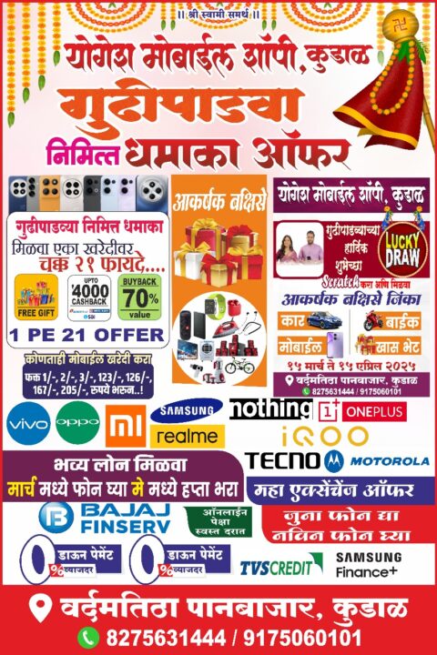 योगेश मोबाईल्स शॉपी, कुडाळ गुढीपाडव्या निमित्त धमाका ऑफर !