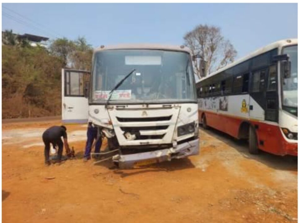 खड्डा चुकवताना एसटी दगडावर धडकली एसटीच्या दर्शनी भागाचा चक्काचूर झाला ,वैभववाडी गणपती विसर्जन घाटाजवळ पहाटे ४ वा धाराशिव -पणजी गाडीला अपघात झाला ह्यात सुदैवाने कोणालाही दुखापत झाली नाही राष्ट्रीय महामार्गावरील एडगाव इनामदारवाडी येथील पुलाचे काम सुरू आहे त्यामुळे पर्यायी मार्गाने सुरू असून वाहतूक तहसीलदार कार्यालय नाका ते सोनाळी पर्यंत केलेला आहे मातीचा पर्यायी मार्ग या मार्गावर मोठमोठे खड्डे पडलेले आहेत ठेकेदारांकडून जाणीवपूर्वक दुर्लक्ष होत असून या खड्यांमुळे आज सकाळी एसटीला अपघात झाला सुदैवाने अनर्थ टळला असून तरी त्याठिकाणी मोठी दुर्घटना होण्याची शक्यता आहे, पर्यायी रस्ता करताना संबंधित ठेकेदाराने सुरक्षिततेची काळजी घेतली नाही मोठ्या वाहनांना या मार्गावरून प्रवास करताना कसरत करावी लागते.