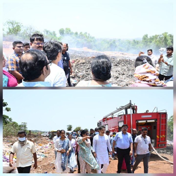 कचरा डेपोला काल लागलेली आग आटोक्यात आणण्यासाठी नगरपंचायतीचे प्रयत्न सुरू असले, तरी या धुरामुळे स्थानिक जनतेला मोठ्या त्रासाला सामोरे जावे लागत आहे. आज आमदार निलेश राणे यांनी प्रत्यक्ष घटनास्थळी भेट देऊन पाहणी केली. यावेळी उपस्थित नगरसेवकांनी मुख्याधिकारी औंधकर यांच्या बेजबाबदार कामाचे पाढे वाचले. विकास कामांचा कोणताही ठोस आराखडा नसल्याने आणि जनतेच्या प्रश्नांकडे दुर्लक्ष होत असल्याने आमदारांचा पारा चढला.