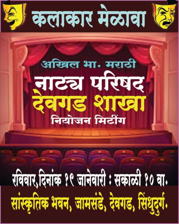 अ.भा.मराठी नाट्य परिषद देवगड शाखेसाठी नियोजन बैठक*देवगडमध्ये अनेक कला संस्था आहेत. काही प्रॅक्टिसमध्ये आहेत तर काही विश्रांती मोडमध्ये आहेत. देवगडमधून मागील दोन पिढ्यांपासून दिग्गज कलाकार आपली कला महाराष्ट्रभर सादर करीत होते आणि आहेत म्हणजेच देवगडमध्ये कलाकारांची खाण आहे असे म्हटले तर वावगे ठरणार नाही.पण खंत एकच आहे की या कलाकारांना व कला संस्थांना एकत्रित आणणारी ॲथोराईज्ड अशी संस्था देवगडमध्ये नाही.याकरीताच पुण्यात मागील वीस वर्षे नाट्य व साहित्य परिषदेवर कार्यकर्ता ते कार्यवाह पदे भुषविलेले डाॅ.भाई बांदकर यांनी देवगडमधील जेष्ठ व श्रेष्ठ असे कलाकार व संस्थाचालक, दिग्दर्शक, लेखक, अभिनेते यांच्यासमवेत अ.भा.मराठी नाट्य परिषद देवगड शाखा सुरु करण्याची पावले उचलली आहेत.श्री.प्रमोद नलावडे, श्री.विद्याधर कार्लेकर, श्री.प्रमोद जोशी, श्री.महादेव प्रभू, श्री.प्रसाद शेवडे, श्री.सचिन जाधव, सौ.विद्या माणगावकर, श्री.बाळा कदम, सौ.मनस्वी घारे, श्री.हर्षद जोशी, डाॅ.चव्हाण, सौ.प्रियांका वेलणकर, श्री.रमेश गोंधळी अशा अनेक कलाकार व पत्रकार बंधूनी या नाट्य परिषदेची मुहूर्तमेढ रोवण्याचे ठरविले आहे.याकरीताच रविवार, दिनांक 19 जानेवारी, सकाळी 10 वाजता, सांस्कृतिक भवन, जामसंडे, देवगड येथे कलाकार मेळावा आयोजित केला आहे.देवगड तालुक्यातील सर्व कलाकारांना उपस्थित रहाण्याचे आवाहन केले आहे.अधिक माहितीसाठी 8080620715 यावर संपर्क साधावा.